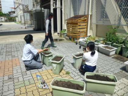 生活で、昨日に引き続き、プランターにトウモロコシを植えていました。収穫が楽しみです。