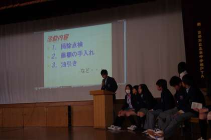 生徒会本部役員と広報局が生徒会活動の説明をしました。
