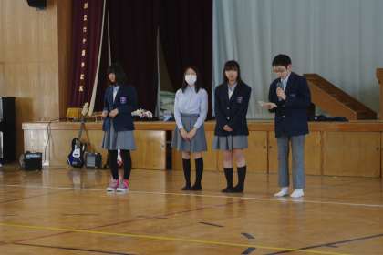 写真左:生徒会長のあいさつ