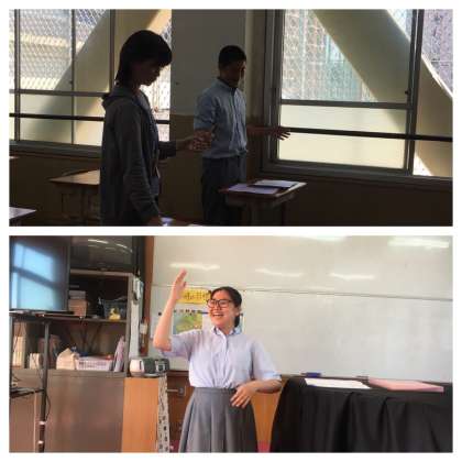 1日目の嘉数公民館で老人会の方々との昼食を摂りながらの交流では、2年生の合唱コンクールで2組がうたった『HEIWAの鐘』。