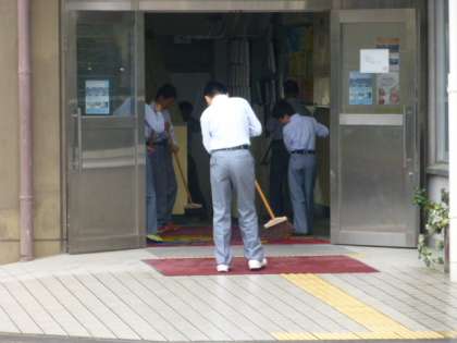 今朝は雨ということで、野球部員が校舎内清掃をしてくれていました。いつもありがとう!