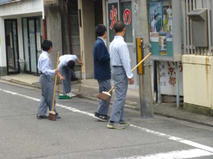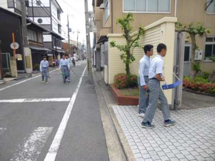 今朝も野球部員が地域の清掃活動をしてくれていました。