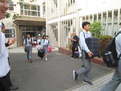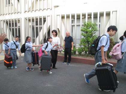 結団式が終わり、バスへ移動です。大きな荷物は、まだそんなに重そうではなく、帰ってきた時には、お土産でいっぱいになっているのでしょうね。