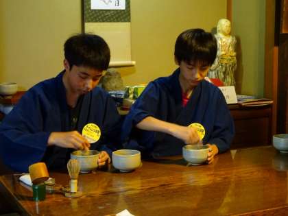 チャレンジ体験学習も2日目です。 今宮神社、大徳寺大仙院、生活介護事業所アイアイハウスでの体験の様子です。どの事業所でも、いろいろと教えていただき、体験させていただいています。今宮神社ではちょうど、舞の奉納をする直前で、拝見することができました。大仙院ではおいしいお抹茶を点ててくれました。 アイアイハウスでは自主的に多くのお仕事を気づいてやっている様子をお聞きしました。