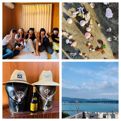 日の出から一時間ぐらいの間に古宇利大橋の下を見ると、夜海の底で寝ていたウミガメが起きて海面に浮上するらしく、それを朝から見に来ているグループがいました。