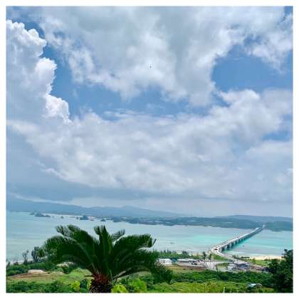 オーシャンタワーからみる海と、美しい古宇利大橋は絶景です。