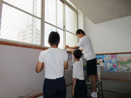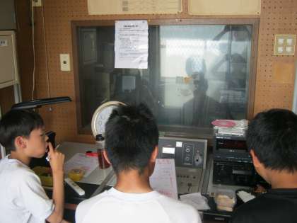 学校での作業の様子です。お昼の放送も担当。