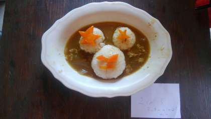 続きまして、3組4班「島カレー」、2組1班「ハートカレー」、2組5班「ミッキーのしゃばしゃばカレー」です。