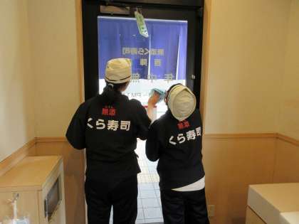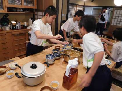 チャレンジ体験学習も終了しました。写真は妙心寺で精進料理を作らせていただいている様子、洛陽保育園でのこどもたちとの様子、くら寿司でのです。
