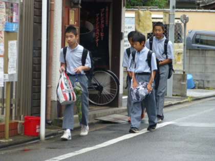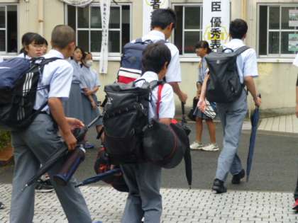 小雨まじりの天気となりました。でも、みんな元気に登校しています。