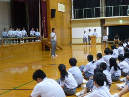 まずは、生徒会本部役員の指示で整列をし、生徒会長のあいさつで総会が始まりました!