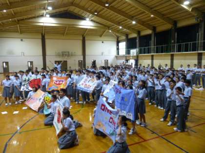 みんなが一つになった瞬間です!みんなの力で、嘉楽中学校をもっともっと盛り上げていきましょう!