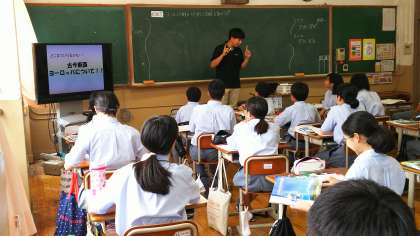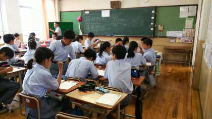 1年2組は社会の授業です。内科検診が授業の初めにかかってしまいましたが,