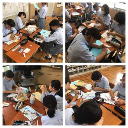 先週に引き続き、今日も、お世話になった民泊先の方々にメッセージボードを作成しました。それぞれの班が感謝の気持ちを込めて、楽しそうにつくっていました。
