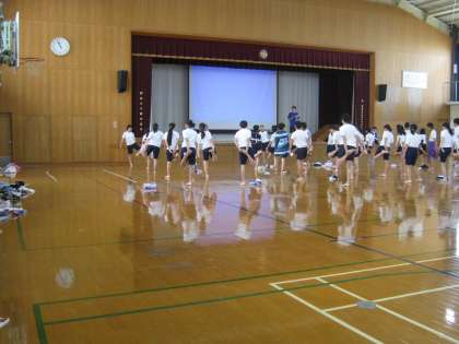 体育館で念入りに体操を行い、学年みんなでプール学習です。