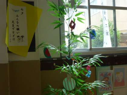 ということで、嘉楽中学校でも生徒会企画として、七夕飾りを設置しました。早速、願い事を書いた短冊をつるした生徒も・・。「高校合格祈願!」「夏季大会で活躍する!」「成績が上がりますように!」等、さまざまな願い事の書かれた短冊が見られました。7日の天気が気になりますが・・。「願いが叶いますように・・・!」