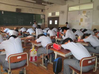 今日は、「すやすやday」の2日目でした。掲載しているのは、1年生の様子です。前に一度「すやすやday」を経験しているはずなのに、まだ慣れていないのか、お弁当を食べ終わっていない人も…。生活安全委員に、「早く片付けて!」と促されていました。