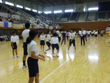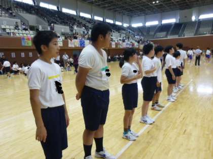 嘉楽中学校は4名の参加です。人数が少ないので、高雄中・大枝中・大原野中の仲間との合同チームです。みんなで声を掛け合いながら、試合に臨みました!勝つことも大切ですが、みんな仲良く楽しむことが大きな目標です!みんなで力合わせてプレーしましょう!