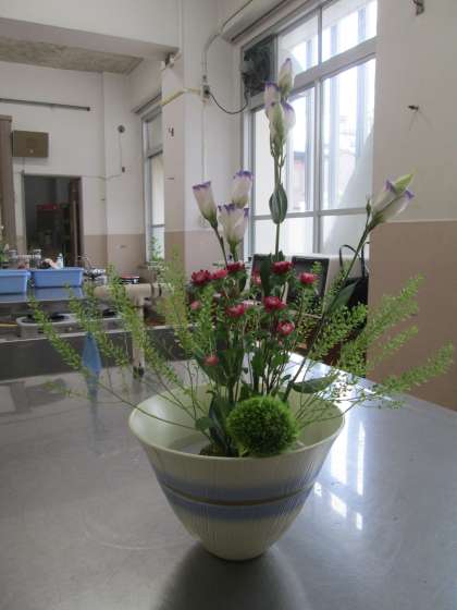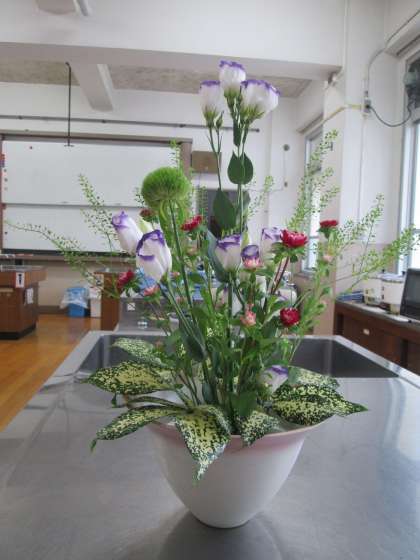 今日は、全員が生け終わってから、ミニ合評会もしました。ひとの生けたお花を鑑賞することによって、自分自身のセンスアップにもつなげてくれたら、と思います。