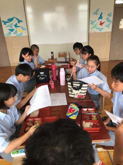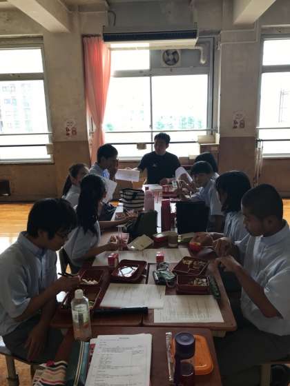 評議員&保健体育委員のランチミーティングが行われています。7月17日(水)の球技大会と学年集会について話し合っています。球技大会はクラス対抗ドッヂボール大会です。また,学年集会では入学からの各クラスの振返りを発表します。たのしみですね!