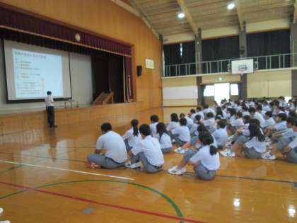 今日、全校生徒で、その影響や恐ろしさについて学びました。ご家庭でも話題にして頂き、夏季休業中、生徒たちが安全かつ健康に過ごせるように見守りをお願い致します。