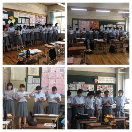 先週の金曜日に、初めて、各教室で合唱練習をしました。