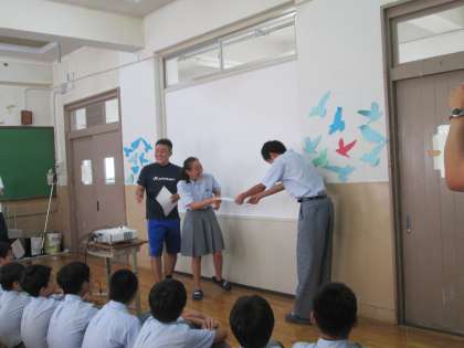 球技大会は3限で終了し、その後教室に戻って、表彰式です。それぞれのクラスが賞状をもらい、MVP(は、わかるとして…)、GTO賞(?)とか、個人個人にも賞状が渡されました。