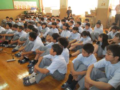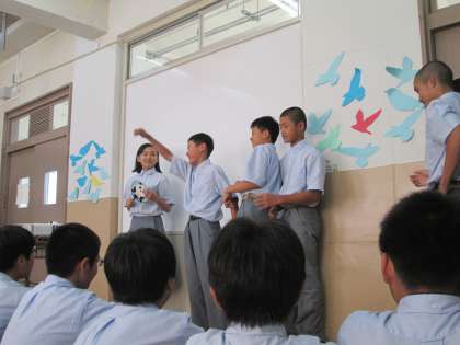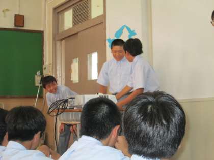 各クラスが、1学期の振り返りを趣向を凝らして発表してくれました。1学期の間に成長できたかな、という点や、もっと頑張らなくては、という点を、評議員が中心になって発表してくれました。