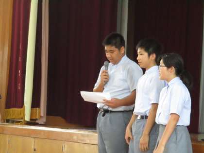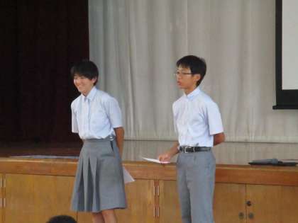 集会のようすです。各クラスからのまとめを発表しています。良かった点と悪かった点をそれぞれ述べて、今後の課題まで言うことができました。