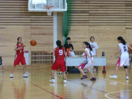 本日9:00より、向島秀蓮小・中学校の体育館で女子バスケットボール部の第1回戦が行われました。対戦相手は会場校の向島秀蓮中学校です。序盤から相手チームの攻撃におされ気味でしたが、粘り強く、最後まであきらめずに戦いました。随所にファインプレーも見られ、大いに盛り上がりました!3年生が一人。あとは2年生と1年生のチームです。ここまで頑張ってきた3年生の最後の試合。熱い闘志を燃やす3年生の思いが伝わってくる試合でした。みんなで力合わせて戦った1戦でした。