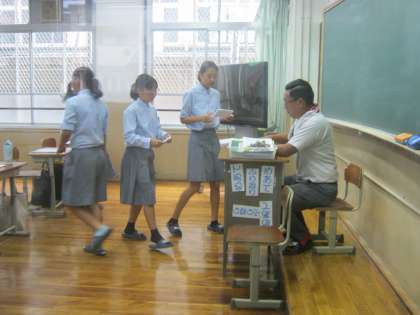 本日より授業再開です。全校集会の後、学活のようすです。宿題を提出したり、夏休みのふりかえりをしました。このあとは夏休み課題確認テストです。いよいよ2学期がはじまります。