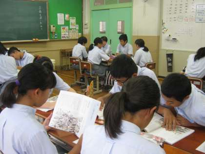 道徳の様子です。「渡良瀬川の鉱毒」の資料をもとに、正義を求めることについて考えています。足尾銅山の鉱毒問題に立ち上がった田中正造の話を読んでいます。正しいことを正しいと主張することの大切さと、むつかしさについて考えました。