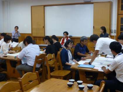 授業のあとは、先生方で研究協議会です。教材選びや授業の進め方等、いろいろと意見を出し合い、授業改善につながる討議となり、研修が深まりました。各校での取組も情報交換ができ、有意義な協議会でした。途中、激しい雷雨もありましたが、教育委員会指導主事の先生、参加いただいた各校の先生方にはたいへんお世話になりました。ありがとうございました!