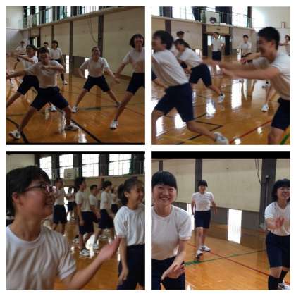 本日の5限の体育に、3年生が全員体育館に集まって、学校祭体育の部で披露する「ソーラン節」の練習を行いました。
