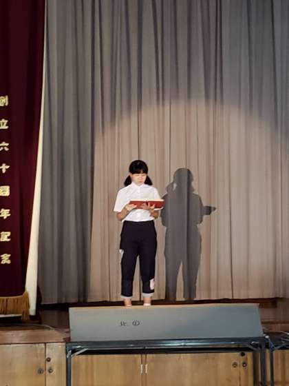 今日は平和劇の最終練習を行いました。体育館で本番と同じように進め、キャストは実際に衣装を着て、さらに大道具を加えての練習でした。最初の頃に比べると、完成度が非常に高くなりました。嘉楽中3年生、一人ひとりが創りあげた平和劇です。『We want - 』を楽しみにしていてください。最後の文化の部、成功させましょう!