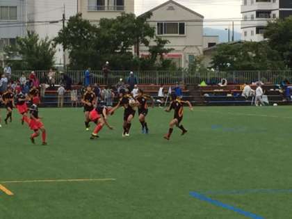 先日21日(土)、3連休の初日にラグビー部夏季大会の予選リーグ第2戦が吉祥院Gで行われました。対戦相手は向島秀蓮小中学校です。第1戦の悔しさを精一杯ぶつけました!