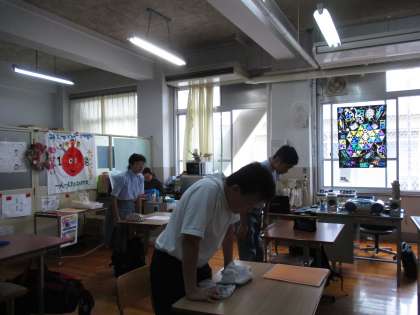 2限の授業です。1組は生活:農作業の時間です。 2組は理科:手羽先の筋肉を観察する予定です。