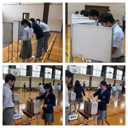 ○自分が公民で習っていることは、本当に役に立つのかと疑問に思っていたけど、少しは役に立つものだなと思いました。立候補していた方々には個々の考え方や目標・公約があり、選ぶことがとても難しかったです。どれが正解なのかは実現してみないと分からないと思います。よりよいものにしていくためにはどのような人材が必要なのかこれから考えていこうと思いました。そして今日やった選挙は57人しか投票者がいなかったので、一票の重みをとても感じることができました。今後の生活にも生かしていけたら良いなと思います。