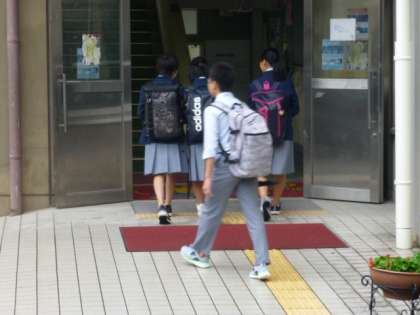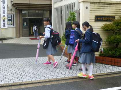 明け方は雨が降っていましたが、登校時にはなんとか止んでいます。