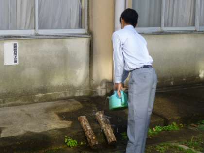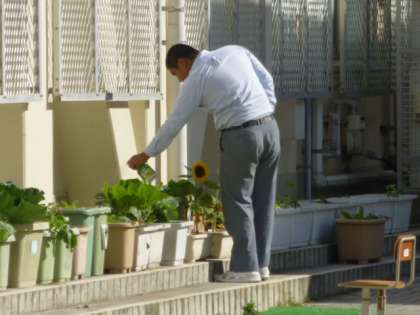 本日2限目の1組授業風景です。生活の時間で、野菜等の世話をしていました。水やりやお薬を散布したり・・、収穫できるのが楽しみです!