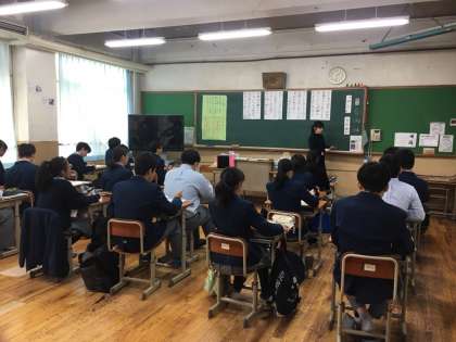公開授業国語の様子です。島崎藤村「初恋」を教材に,誌の世界をイメージし,言葉の響きやリズムを味わいながら古典の世界に触れる。というような授業を行いました。
