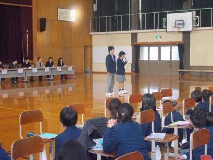 本日6限には,全学年が体育館に集まり,第4回あしあと検定が行われました。学習協力委員の挨拶があり,いよいよスタートです。それぞれ日頃の学習の成果が発揮できたでしょうか。どれも振り返りのできる良いノートになってきましたね。1級を目指して頑張った様子が見られましたが,結果はどうだったかな?来週は月曜日から定期テストです。ノートを見てこれまでの授業の筋道を確認し,しっかりテスト勉強につなげていきましょう。頑張れ!!
