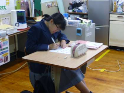 この時間はテストに向けての自主学習です。数学のテストに向けて課題に取り組んでいました。わからない部分を先生に質問したり、積極的です。頑張ってくださいね!