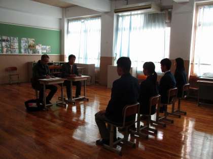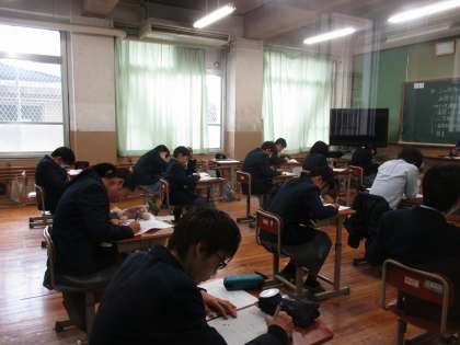 めんせつ検定の様子です。待機生徒は教室で、学習や読書に取り組んでいます。