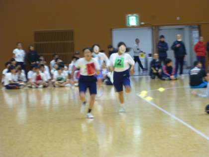 まずは第1走者のNくん。堂々とした素晴らしい走りを見せ、トップで第2走者にバトンパスしました。第2走者のMさん。粘り強い走りで混戦のまま、3着でバトンパスしました。でも、トップとの差はあまりありません。逆転できるか?楽しみです!さあ、頑張れ!