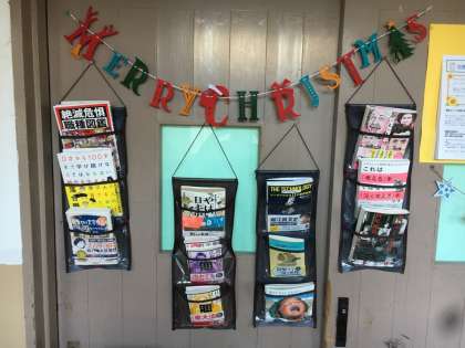 廊下の図書の掲示もクリスマス仕様になっています。