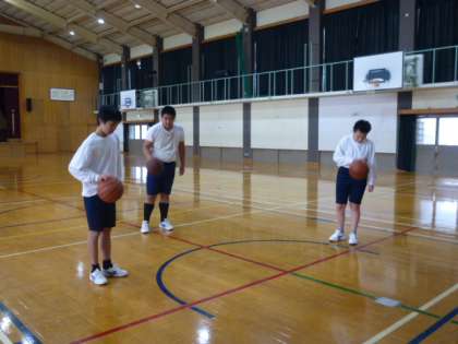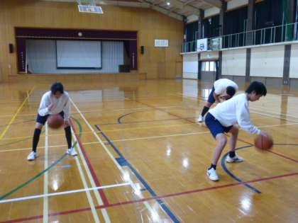 バスケットは、ドリブルの練習です。みんな頑張っています!