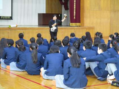 たばこについていろいろなお話を聞きました。映像や資料をもとに丁寧にわかりやすく教えて下さいました。全員一生懸命聴く姿が見られ、講師の先生方も感心しておられました。