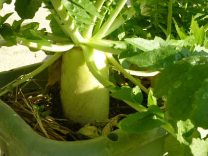 本日1限目、1組の授業風景です。生活の時間で、花や野菜のお世話です!これまで大切に育ててきたダイコンや白菜、キャベツが収穫期を迎えようとしています。順調に(予定よりも早く)育っています。昨日、1本ずつ大根を家に持ち帰りました。次は授業で調理実習ですかね!楽しみですね!