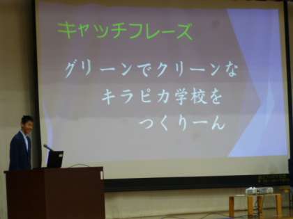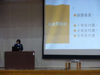 環境美化委員会、保健体育委員会、図書文化委員会へと説明が続きます。不慣れなところもありますが、それぞれの委員長が一生懸命に話していた姿に感動です。これからが楽しみです!